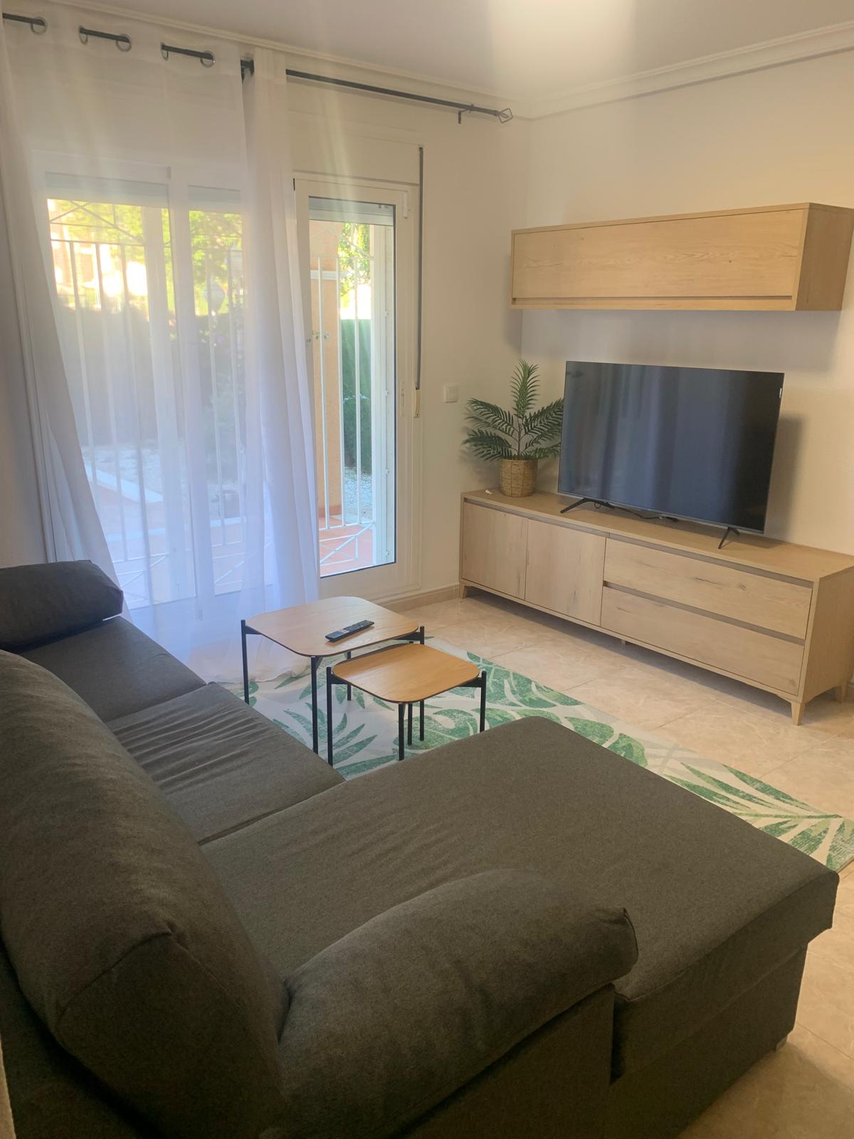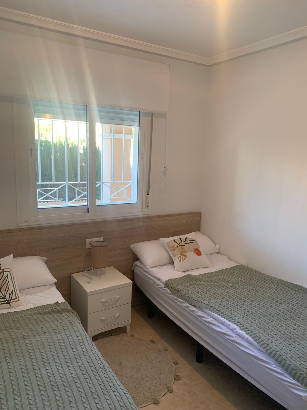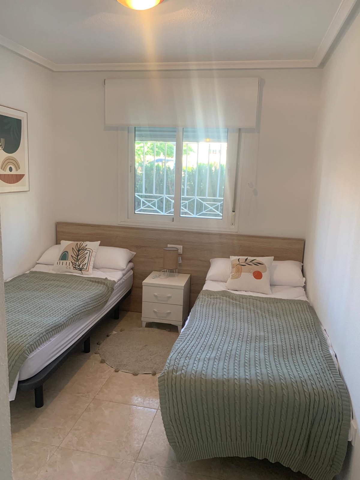 2 bedroom 2 bathroom apartment fully furnished and ready to move in , The apartment has air conditioning in the main livivng space ensuite bathroom with bath and shower combined and an entrance leading out on to the main terrace. the second bedroom has two single beds and the main bathroom opposite. Open plan living and dining space and utility room of the kitchen. Entrance from the livingroom on to a spacious private terrace with an exit to the communal areas. Long term rent with contract